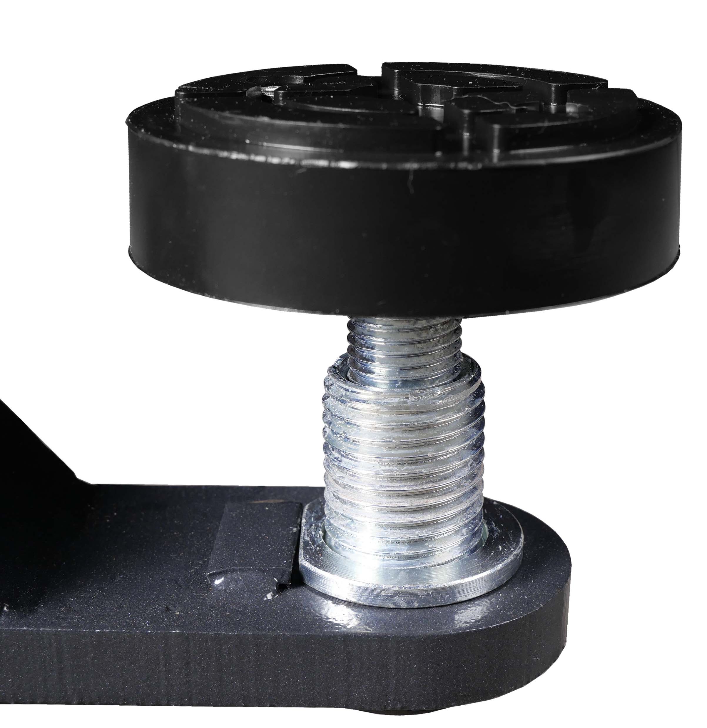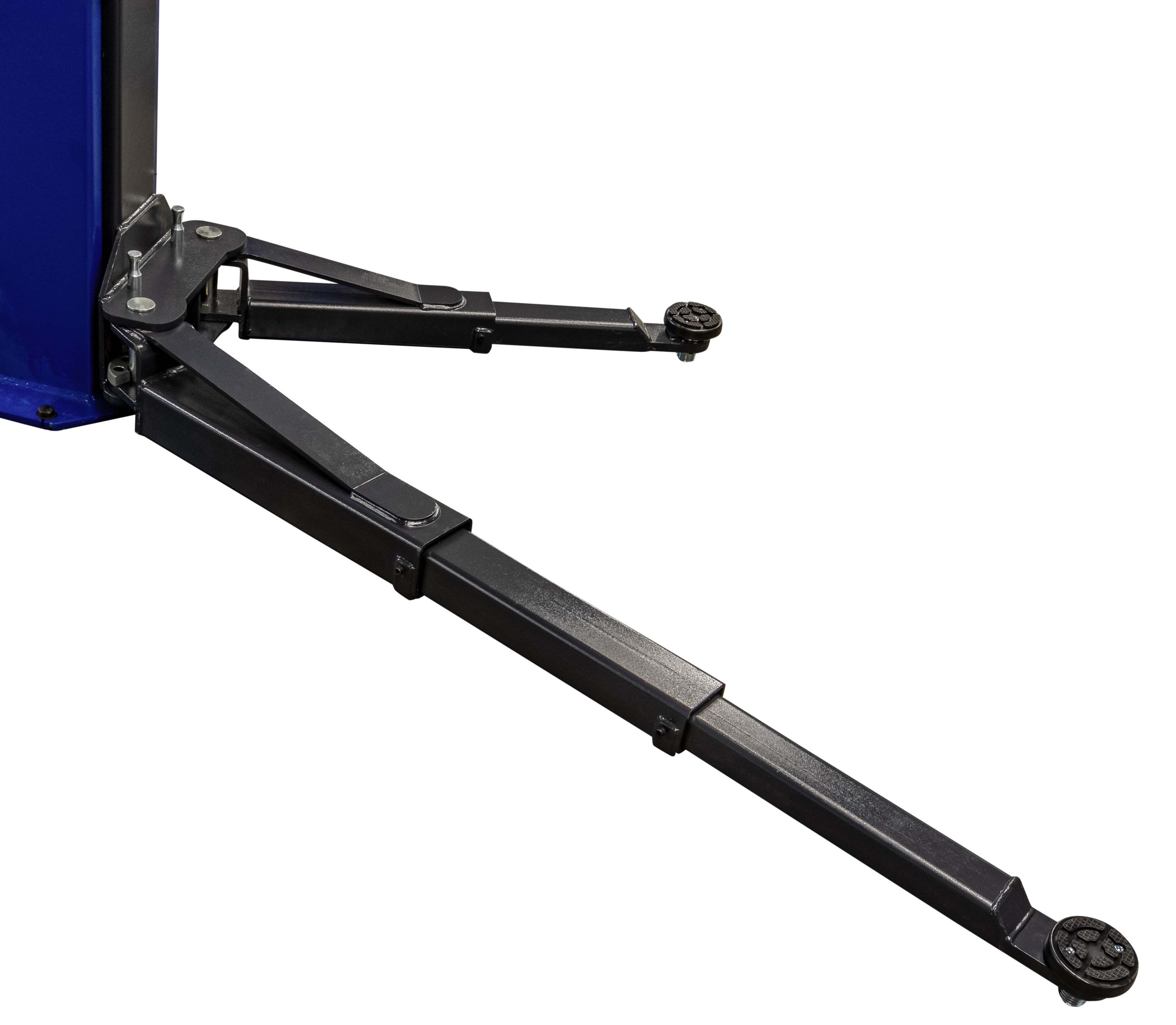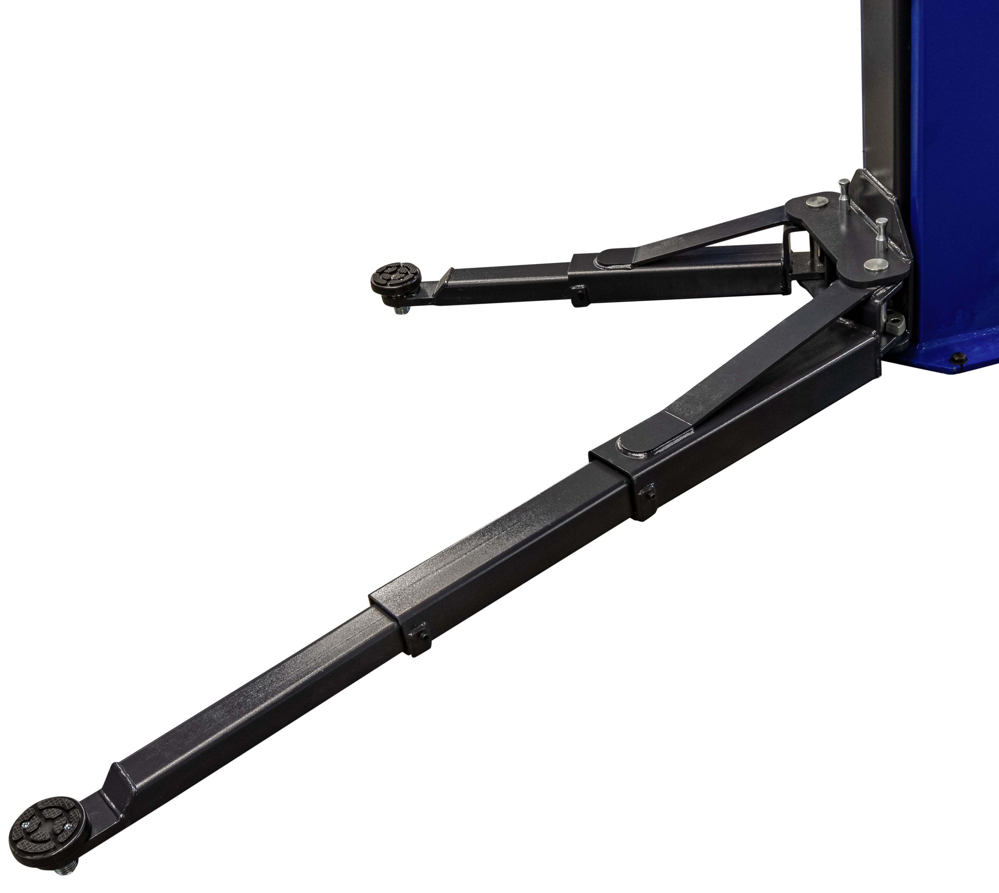 Die teleskopischen zweistufigen und dreistufigen Arme sind einfach zu verstellen. Sie werden automatisch verriegelt. Die Hebebühne hat vier Tragarme, die asymmetrisch bewegt werden können, sodass auch große Türöffnungswinkel kein Problem darstellen. Zum Schutz des Autos sind an den Säuleninnenseiten Schutzkappen und an den Armen Türschutzgummis angebracht. Das Fahrzeug wird auf den höhenverstellbaren Hebetellern mit Doppelspindeln angehoben.