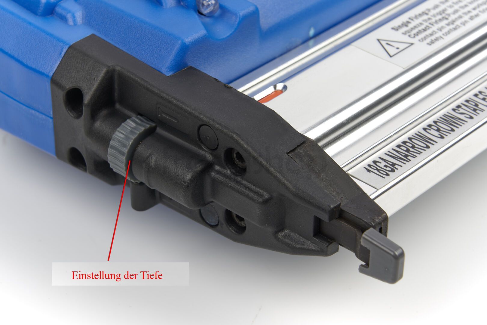 Die Tiefe der Nageleinbringung kann mit einem handlichen Drehknopf eingestellt werden.