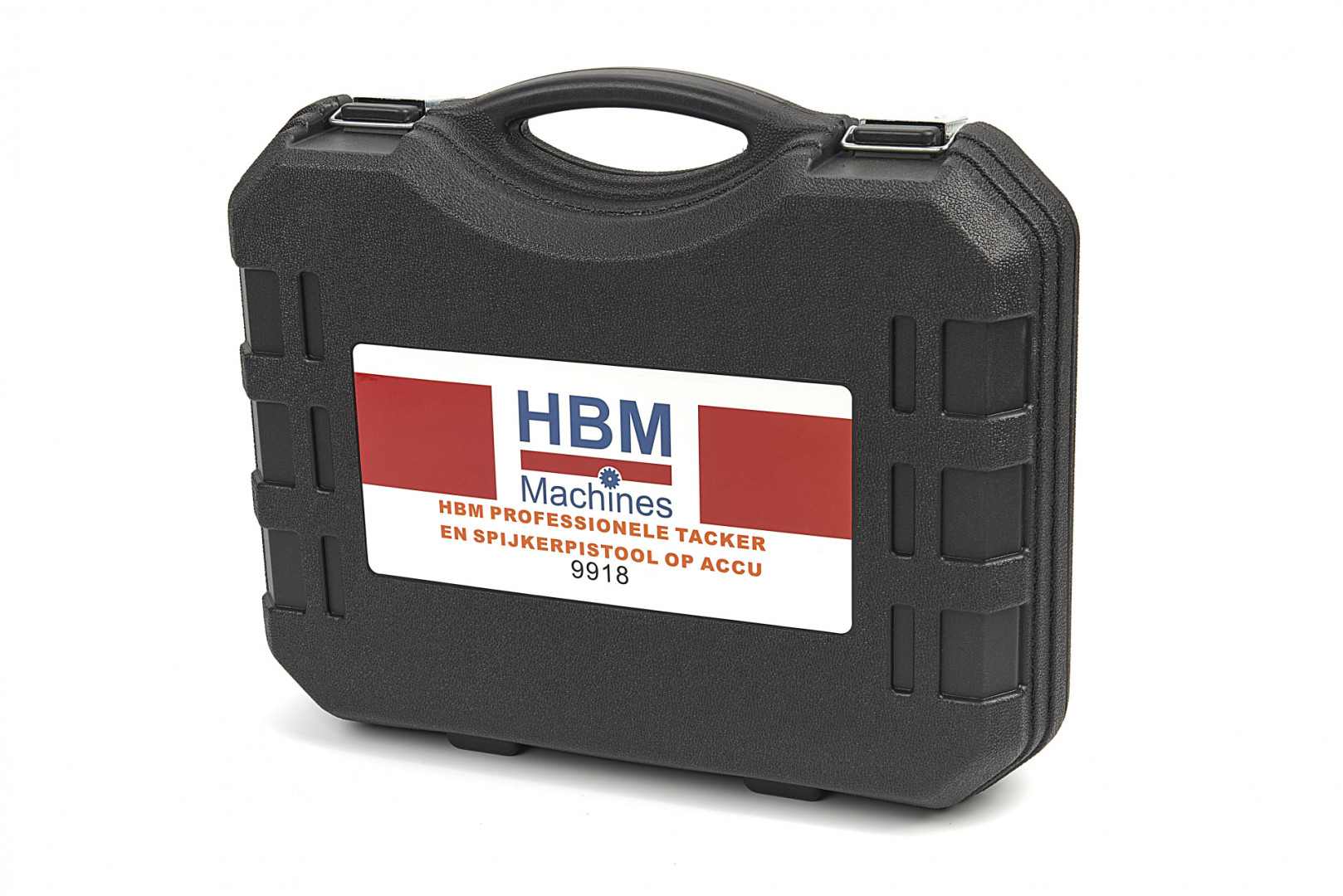 Diese Nagel- und Klammerpistole befindet sich in einem kleinen handlichen Koffer, in dem alles aufbewahrt wird.