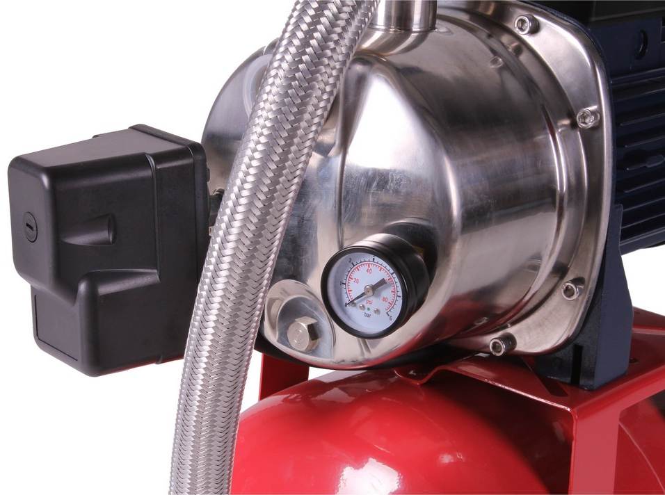 Das Hauswasserwerk ist eine wasserdruckerhöhende Wasserpumpe zur automatischen Hauswasserversorgung mit Brauchwasser aus Brunnen und Zisternen. Das Wasser kann zur Gartenbewässerung und automatischen Beregnung genutzt werden. Es kann klares Wasser mit konstantem Druck gefördert werden. Dieser Hauswassertank mit hochwertigem Pumpengehäuse aus Edelstahl verfügt über einen thermischen Überlastschutz.