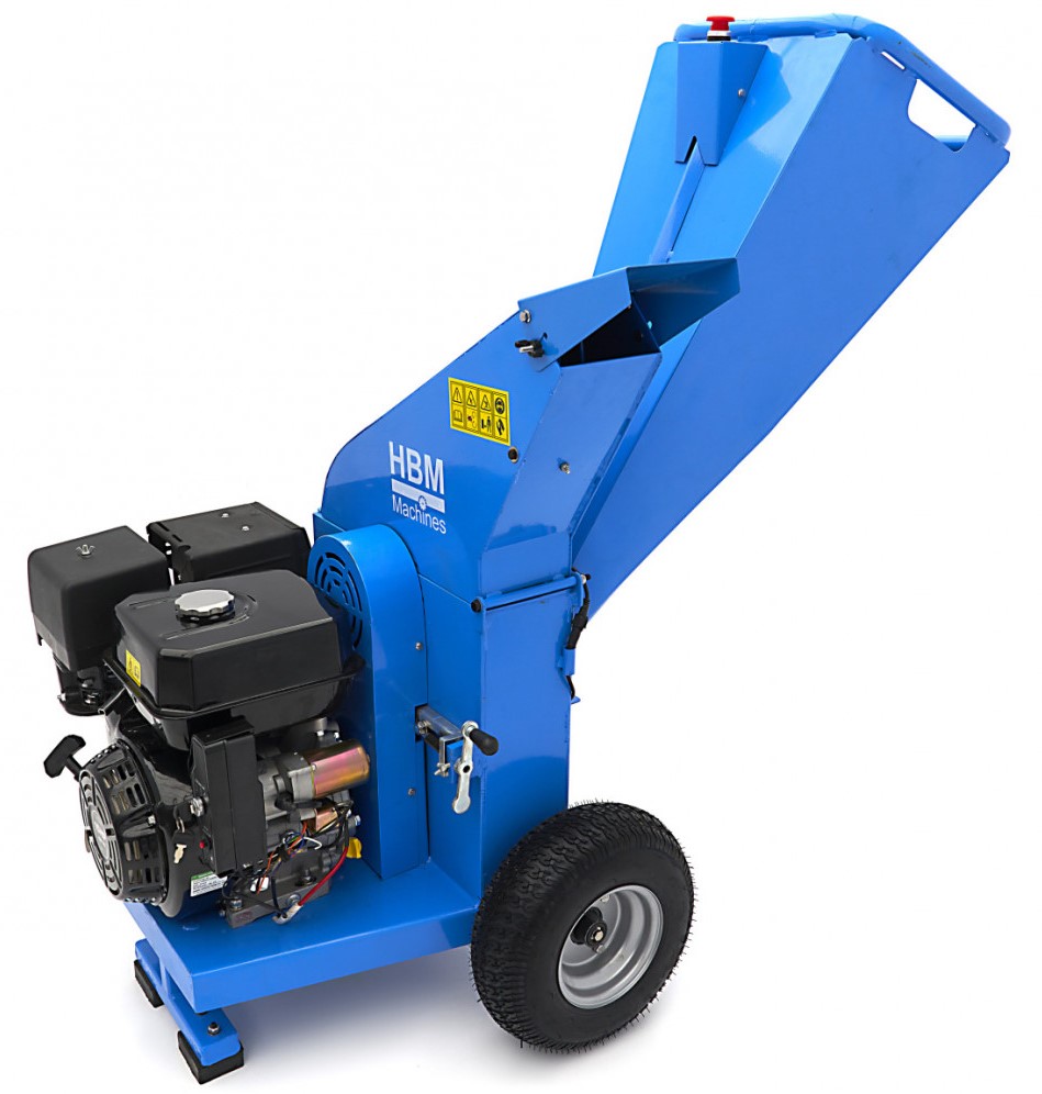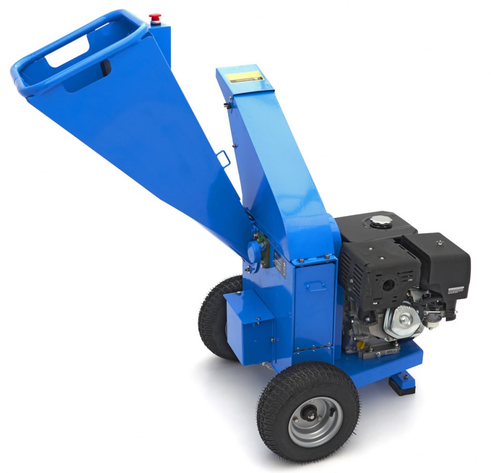 Dieser Holzhäcksler (Holzhackmaschine) eignet sich zum Schreddern und Hacken von Ästen, Sträuchern, Hecken und anderen Grünabfällen. Die Äste mit einem Durchmesser von bis zu 7,5 cm werden durch den Trichter eingezogen. Der leistungsstarke Motor treibt eine große Stahlplatte mit Messern an. Das Gewicht dieser Platte wirkt wie ein Schwungrad und verleiht der Maschine eine große Menge an mechanisch gespeicherter Energie. Die Messer zerkleinern die Äste zu brauchbaren Holzspänen, die von der Maschine anschließend mit hoher Geschwindigkeit hochgeworfen werden. Dies geschieht durch die hinteren auf der Stahlplatte kreuzenden Messer. Unmittelbar vor der Auswurföffnung befindet sich eine Leiste, die große Holzstücke aufhält und in die Hackschnitzelkammer zurückwirft. Durch das einstellbare Leitblech am Ausgang der Maschine lassen sich die Hackschnitzel leicht in einer Schubkarre oder in einem Anhänger sammeln. Das fertig geschredderte Produkt kann als Bodenbelag, zum Auffüllen von Gartenwegen oder als Brennholz für den Kamin genutzt werden.