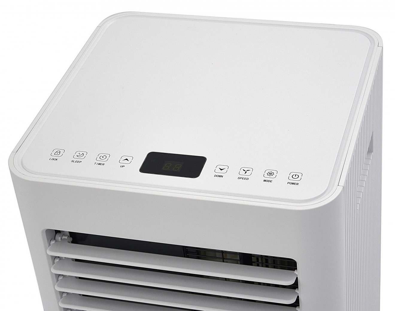 Eingestellt wird der Luftkühler über eine Infrarot Fernbedienung oder das vordere Bedienfeld. Das Kühlgerät hat vier Geschwindigkeitsstufen für die Kühlung. Darüber hinaus mangelt es dieser Klimaanlage nicht an Einstellungen und Funktionen. Die Temperatur ist digital einstellbar und auf dem LED-Display gut ablesbar. Falls erwünscht, kann eine Kindersicherung eingerichtet werden, die eine ungewollte Bedienung durch Kinderhände unmöglich macht. Außerdem verfügt das Gerät über einen Sleep-Timer, mit dem sich die Klimaanlage automatisch ausschalten lässt. So können Sie kühl einschlafen!