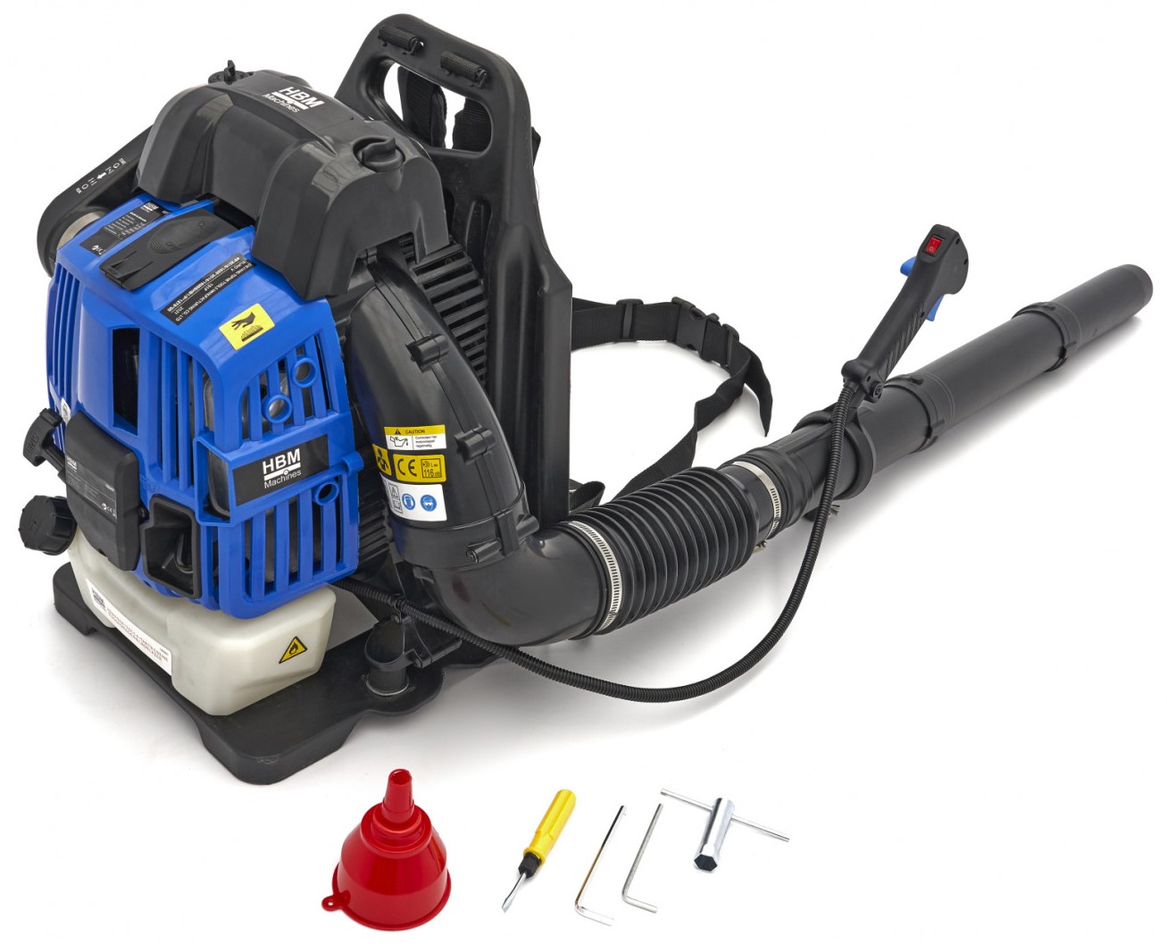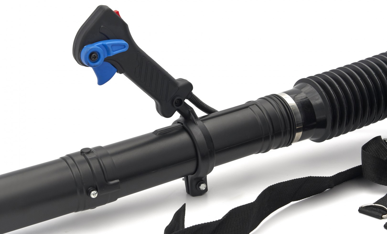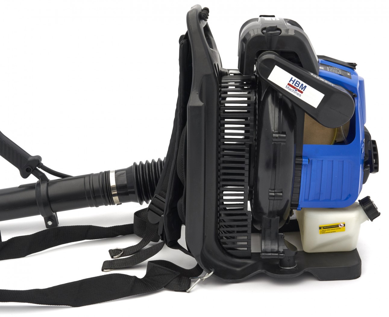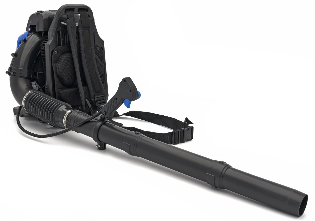 Der große Ventilator des Bläsers sorgt für eine Austrittsgeschwindigkeit von 87m/s. Die Öffnung des Blasrohrs hat durchgehend einen Durchmesser von 65mm. Die meisten Rucksack Laubbläser haben am Ende des Blasrohrs eine erhebliche Verengung, um eine höhere Ausblasgeschwindigkeit zu erreichen. Dieser Laubbläser aber nicht - denn selbst bei einer enormen Luftverdrängung von mehreren Kubikmetern pro Sekunde beträgt die Ausblasgeschwindigkeit bei diesem Gerät immer noch über 80 m/s.