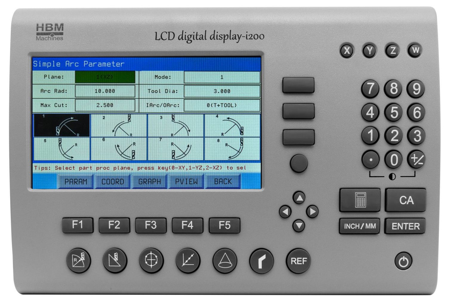 Das Gehäuse der Digitalanzeige ist aus schlagfestem Polyethylen (PE) gefertigt. Auf der Rückseite befinden sich die Anschlüsse für die Glaslineale. Dieses Auslesegerät mit Farb-LCD-Display sieht nicht nur luxuriös aus, sondern ist auch sehr angenehm zu bedienen, da jede Funktion grafisch dargestellt wird. Mit den integrierten Gummitasten können Sie sich leicht durch die grafischen Funktionen bewegen. Das System gibt auch während des Drehens oder Fräsens eine Rückmeldung und stellt sicher, dass Sie auf die richtige Weise weiterarbeiten. Dank der mitgelieferten Schutzhülle können Sie das Lesegerät einfach transportieren.