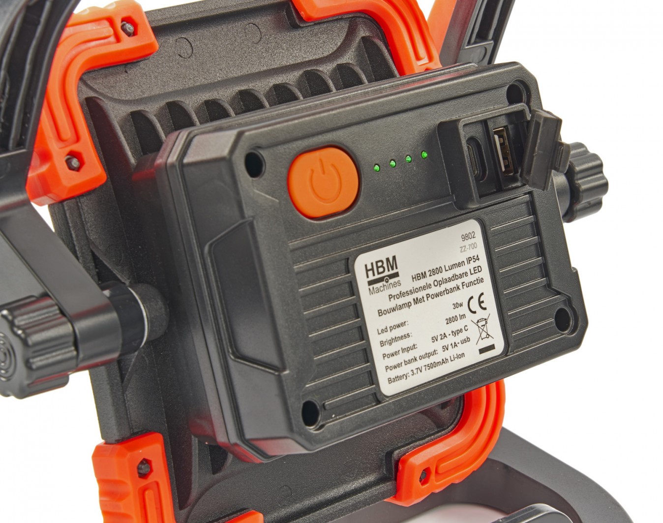 Wenn Sie ein Lichtmeer für Ihre Baustelle wollen, dann ist diese LED Konstruktionslampe die ideale Lösung! Diese Bauleuchte verfügt über einen wiederaufladbaren Akku, der die Lampe bis zu 2 Stunden lang betreiben kann. Die Batterie kann ebenso als mobile Powerbank verwendet werden. Nutzen Sie dafür einfach den USB-Anschluss auf der Rückseite der Lampe, über den Sie Ihr Handy oder andere USB-Geräte aufladen können.