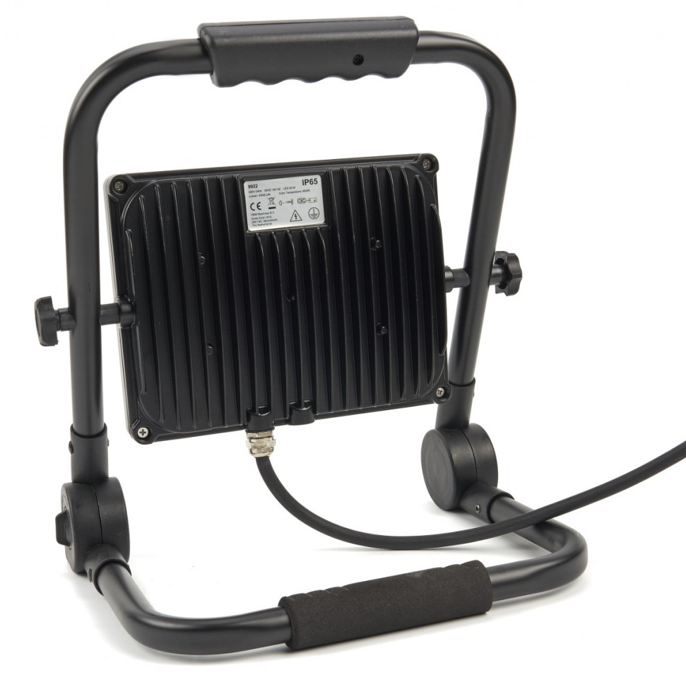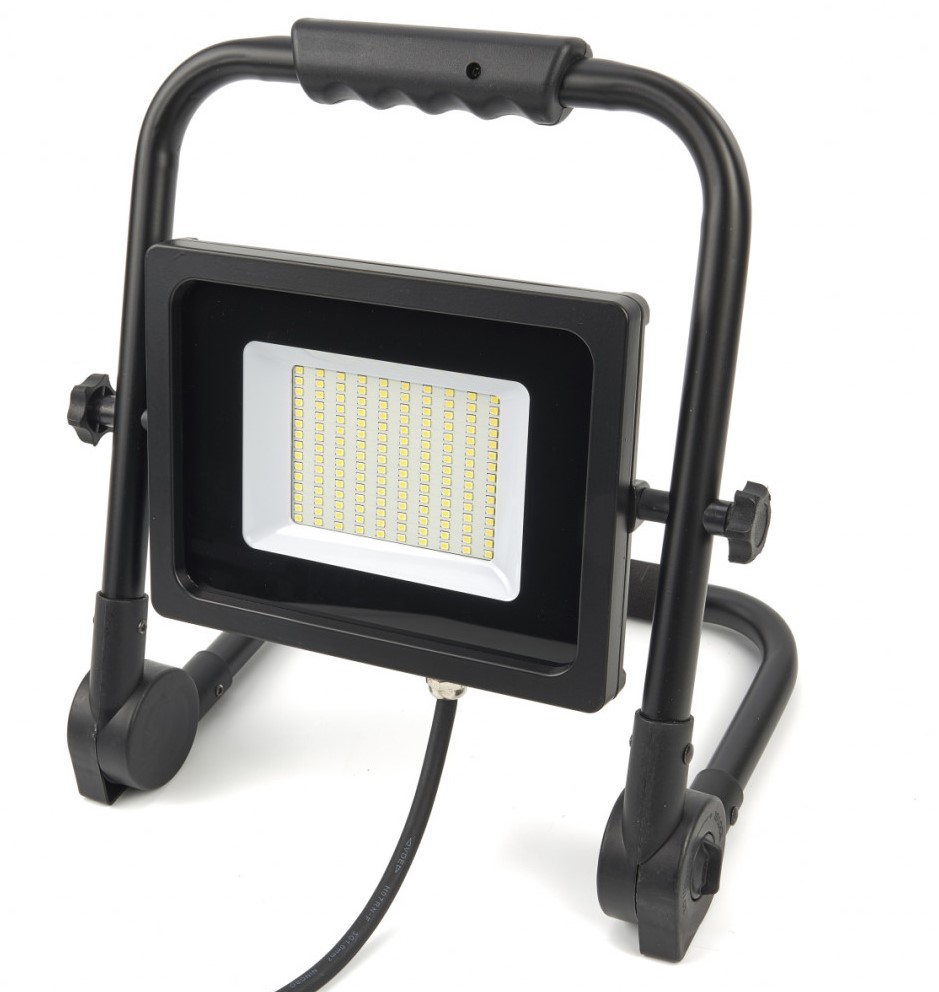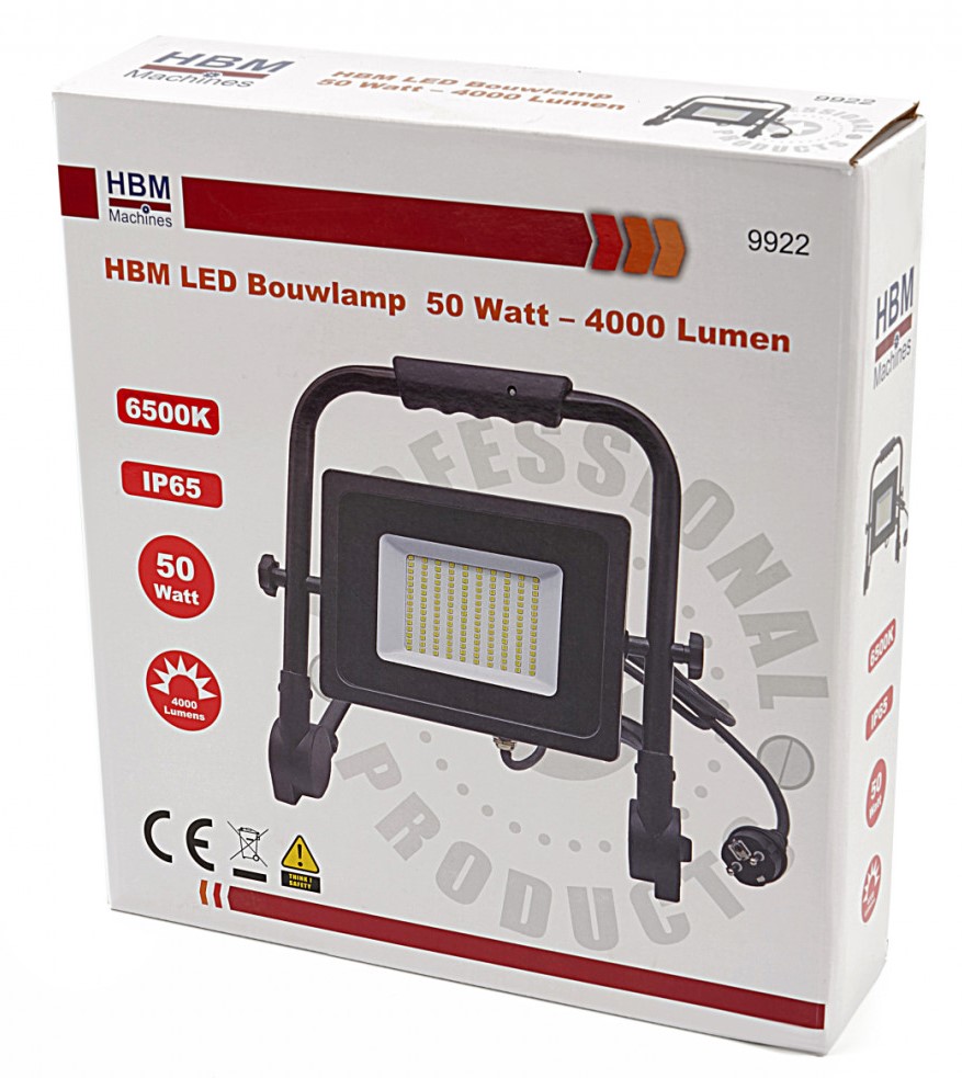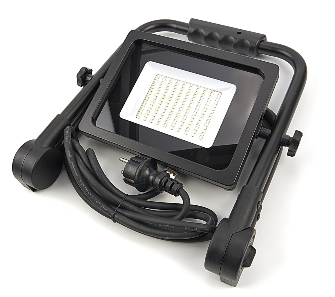 Diese LED-Konstruktionsleuchte mit klappbarem Bodenständer wirft einen starken Lichtstrahl auf Ihr Bauprojekt. Die LED-Lampe hat eine Farbtemperatur von etwa 6500° Kelvin, was dem hellen Tageslicht nahe kommt. Mit einem Stromverbrauch von 50 Watt nutzt diese Lampe im Vergleich zu einer Halogenlampe nur 20% des Stroms für die gleiche Lichtmenge. Dabei liefert die Lampe ein schön gestreutes Lichtfeld mit einem großen Ausfallwinkel. Das IP65 Gehäuse ist spritzwasser- und staubgeschützt. Dadurch ist diese Lampe für den Innen- und Außenbereich geeignet. Der Ständer und die LED-Leuchte kann auf verschiedene Weise aufgebaut werden. Die Lampe kann in diesem Rahmen um 90° geschwenkt werden und somit sowohl horizontal als auch vertikal genutzt werden. Durch das klappbare Bodenstativ kann die Bauleuchte sehr kompakt gelagert werden.