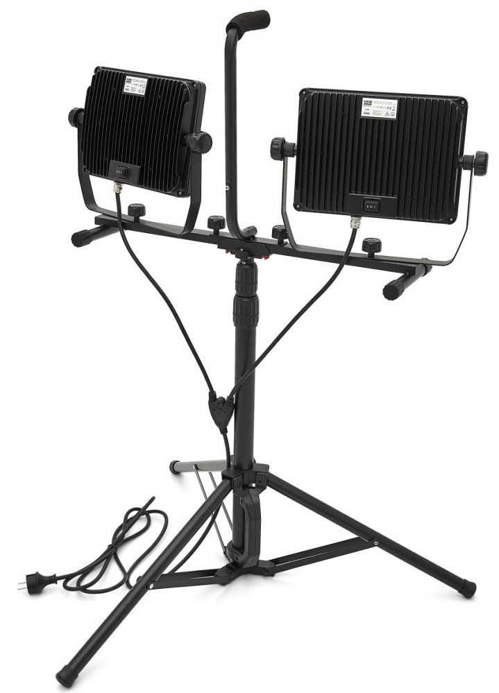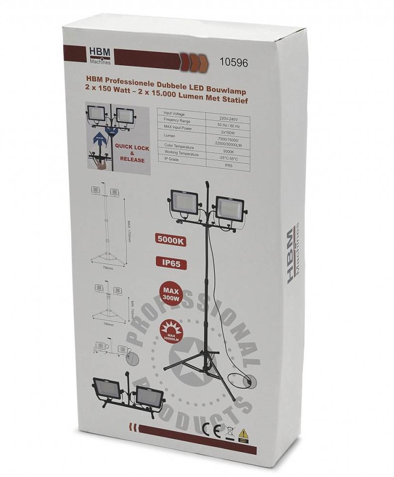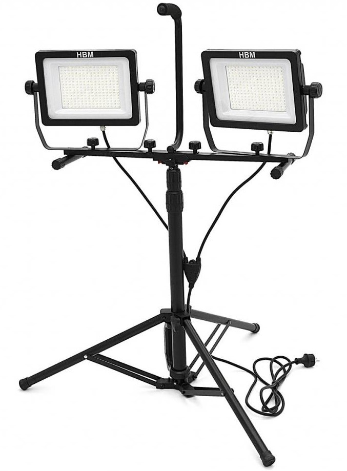 Diese doppelte LED-Konstruktionsleuchte wirft auch aus großer Entfernung viel Licht auf Ihr Bauobjekt. Die LED-Lampen haben eine Farbtemperatur von etwa 5000 Kelvin, was dem kalten Tageslicht nahe kommt und wesentlich weißer als Halogenlampenlicht ist. Mit einem Stromverbrauch von 150 Watt nutzt diese Lampe im Vergleich zu einer Halogenlampe nur 10% des Stroms für die gleiche Lichtmenge. Dabei liefert die Lampe mit einer Matrix von Power-LEDs ein schön gestreutes Licht. So entsteht ein großes und gleichmäßiges Lichtfeld. Das IP65 Gehäuse ist spritzwasser- und staubgeschützt. Dadurch ist diese Lampe für den Innen- und Außenbereich geeignet.