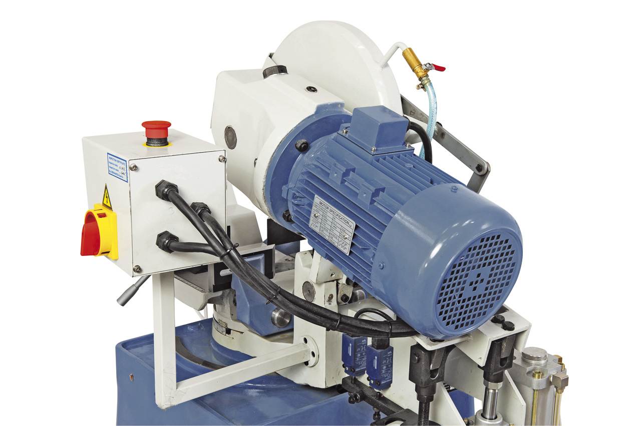 • Pneumat. Absenken des Sägekopfes mit einstellbarer Zustell- und Rückzugsgeschwindigkeit