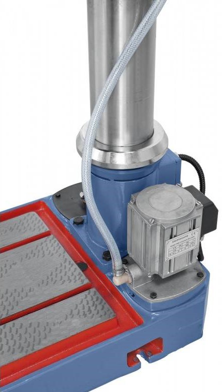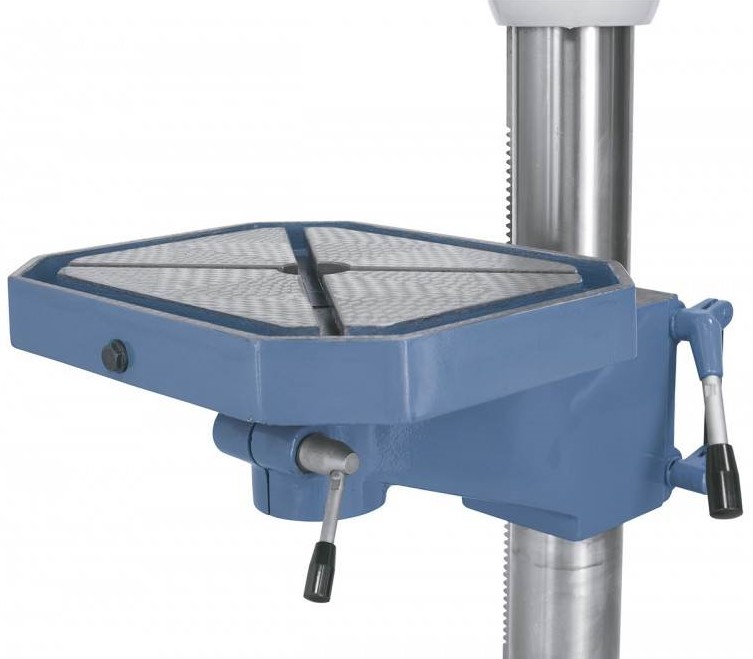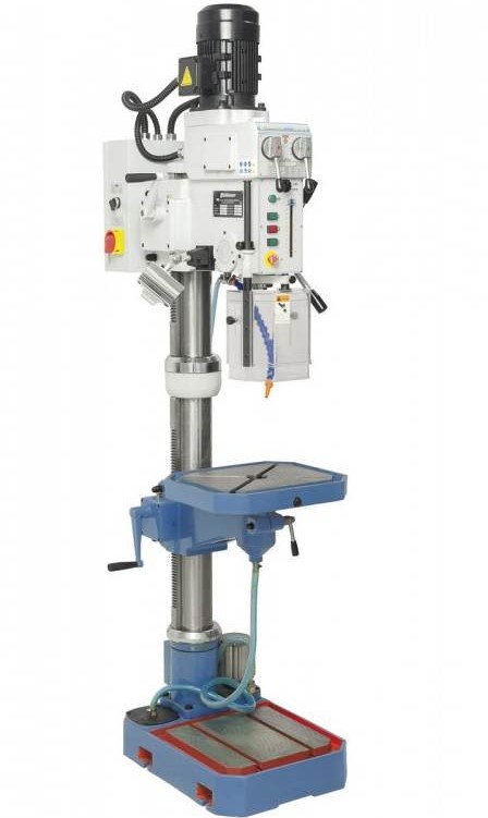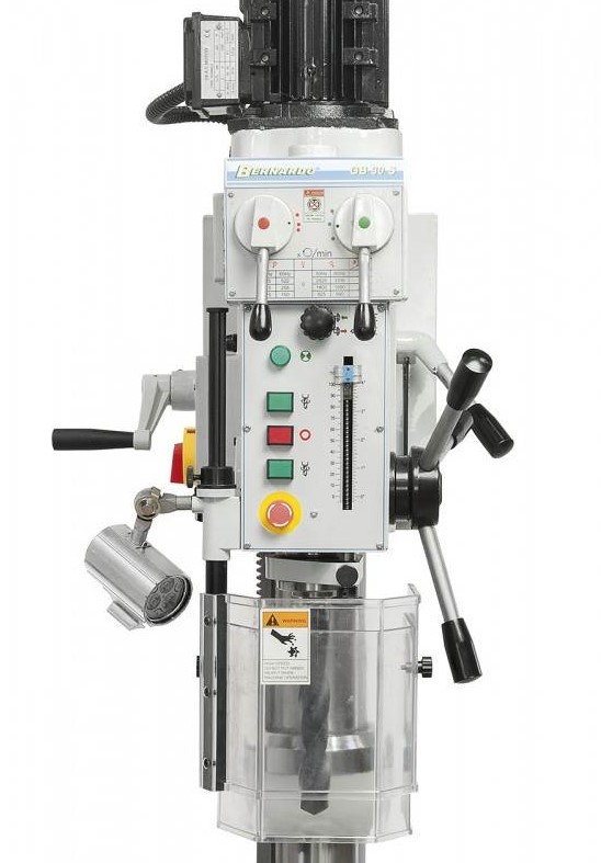 Die leistungsstarke Säulenbohrmaschine zeichnet sich durch ihre robuste vibrationsfreie Bauweise aus. Ihren Einsatz findet dieses Modell in Reparaturbetrieben, mechanischen Werkstätten oder in Ausbildungsstätten. Die Maschine verspricht eine Rundlaufgenauigkeit von ≤ 0,02 mm, die in der Pinole gemessen wurde. Die Spindel läuft im Präzisionslager. Der Tiefenanschlag des Bohrers kann mit einer Skala exakt eingestellt werde. Die Drehzahleinstellungen können über einen Schalthebel am Getriebekopf eingerichtet werden. Die Säulenbohrmaschine verfügt über eine Links & Rechtsschaltung. Diese ist gerade für die Gewindebohrfunktion sehr wichtig. Durch die geschliffenen und gehärteten Zahnräder im Getriebe läuft die Maschine sehr ruhig.