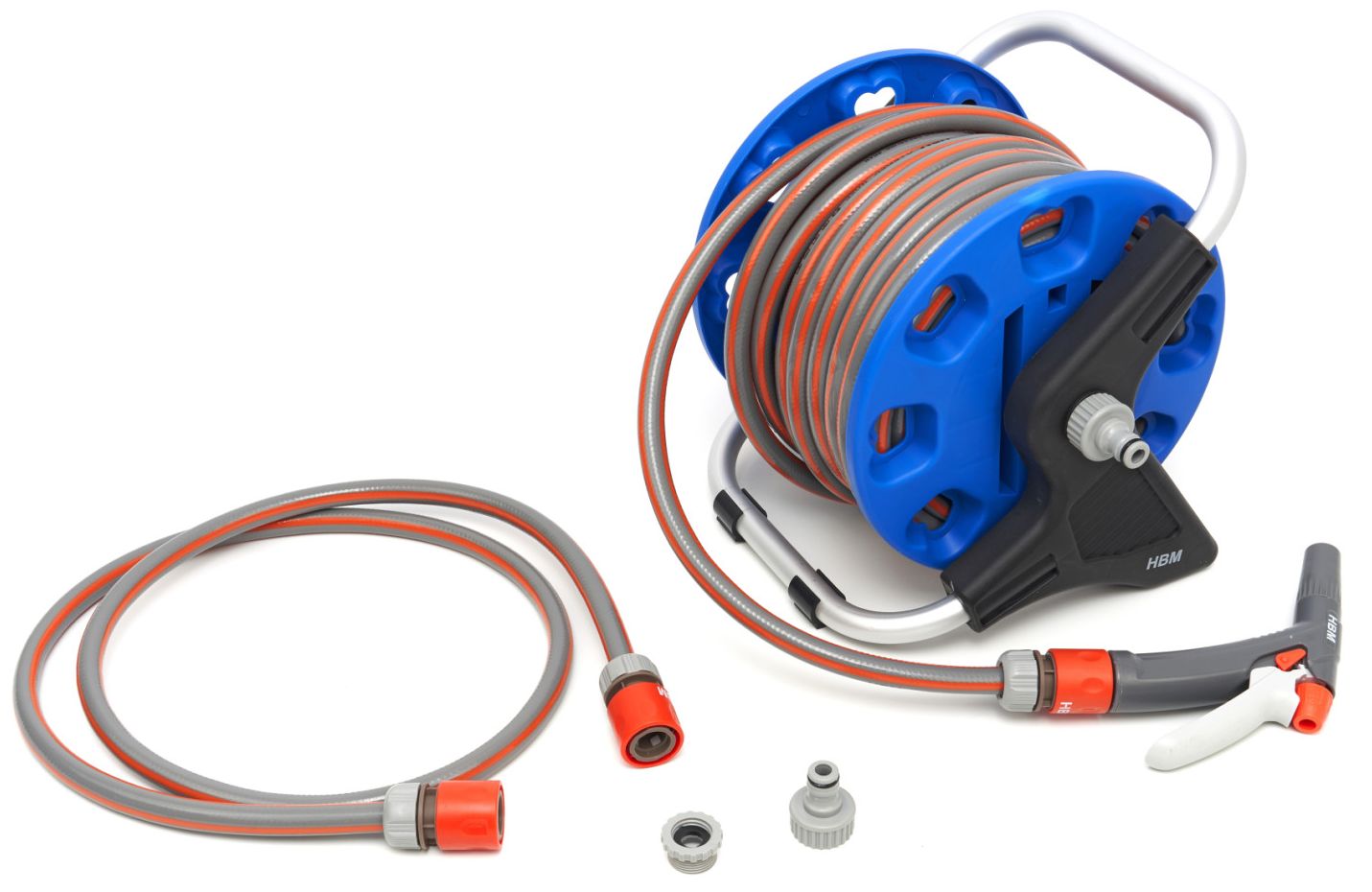 Wählen Sie bei diesem Wasserschlauch-Set zwischen den Längen - 15 Meter oder 30 Meter! Verstauen Sie Ihren Gartenschlauch einfach aufgerollt!
