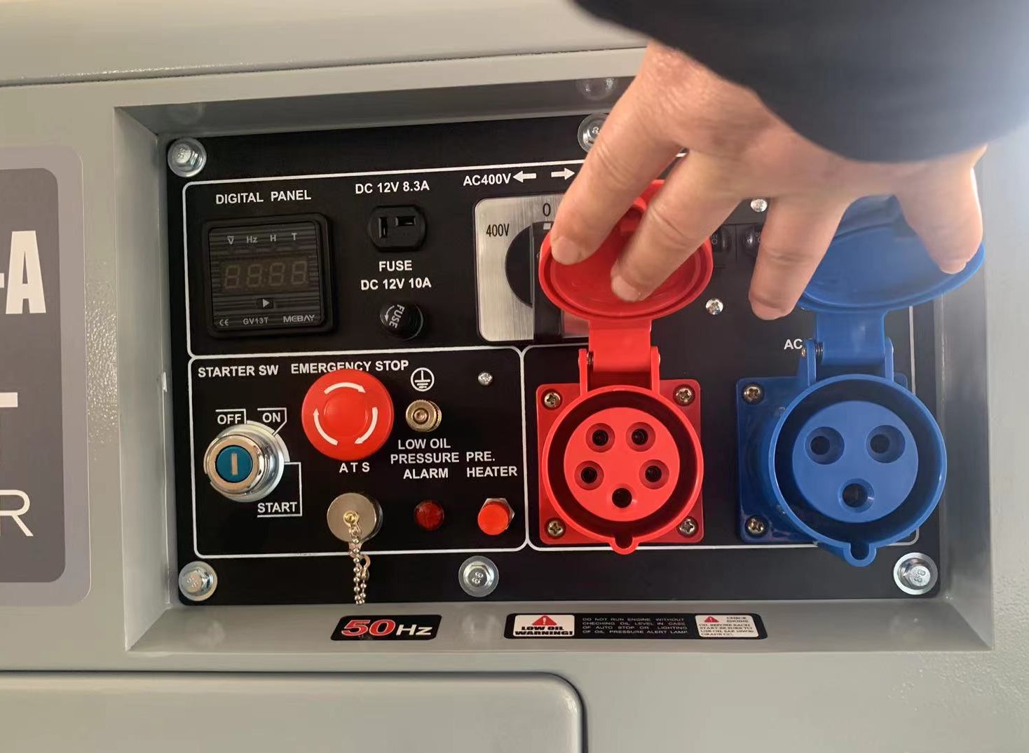 Vor dem Start befüllen Sie den Stromgenerator mit dem Dieselkraftstoff und dem Schmieröl. Obwohl die Maschine über einen Sensor für einen niedrigen Öldruck verfügt, ist es immer ratsam, vor jeder Nutzung den Ölstand zu prüfen. Da das Stromaggregat luftgekühlt wird, sollten Sie immer darauf achten, dass der Standort des Geräts gut durchlüftet ist. Der Stromgenerator kann einfach mit einem Elektrostarter gestartet werden. Außerdem kann der Generator mit der Fernbedienung betätigt werden. Der Motor arbeitet mit einem Direkteinspritzsystem aus dem großen Dieselkraftstofftank. Durch die leichte Konstruktion und den Rollen kann der Generator mobil genutzt und einfach bewegt werden. Der Stromgenerator verfügt über einen NFB Schutzschalter, eine Autostop-Funktion, AVR und ATS.