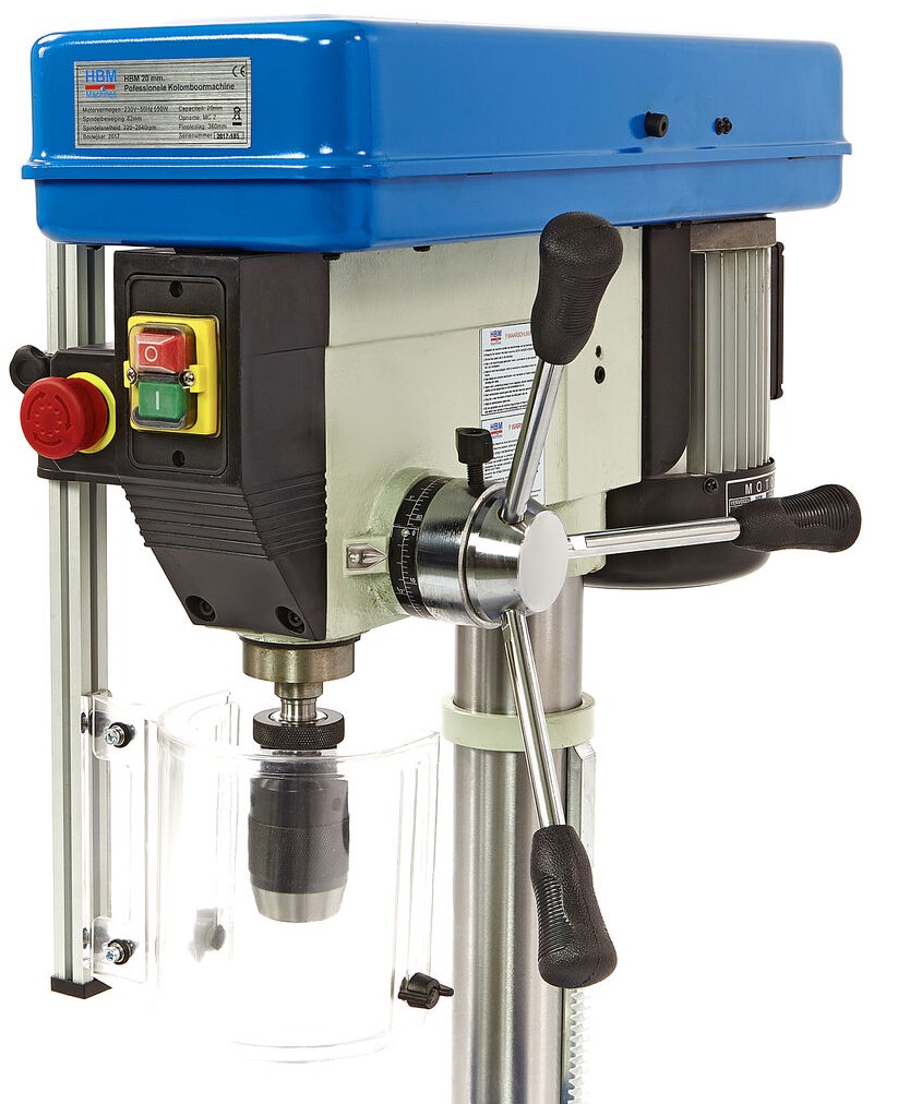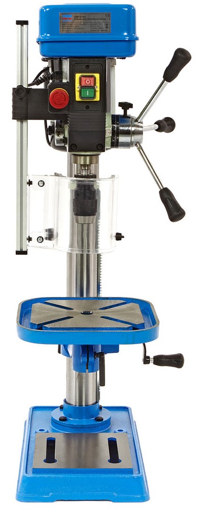 Diese Bohrmaschine bietet Ihnen eine hohe Qualität für Ihre Werkstatt. Die Maschine kann einfach in der Werkstatt aufgestellt und so jederzeit genutzt werden. Ein schnellwechselbarer Bohrkopf (1mm bis 16mm) mit Stift ist bereits an der Maschine montiert. Die angebrachte, höhenverstellbare Arbeitsfläche kann einfach in den optimalen Winkel gekippt werden. Die Bohrmaschine verfügt über einen angebrachten Tiefenanschlag, der anzeigt, wie tief man bereits gebohrt hat. Die Spindel ist durch die ARBO und CE zugelassene Schutzhülle gesichert. Dadurch sind Sie auch bei der Nutzung gut geschützt. Ein Spannschlüssel zum Spannen der Bits und Bohrer liegt der Lieferung bei.