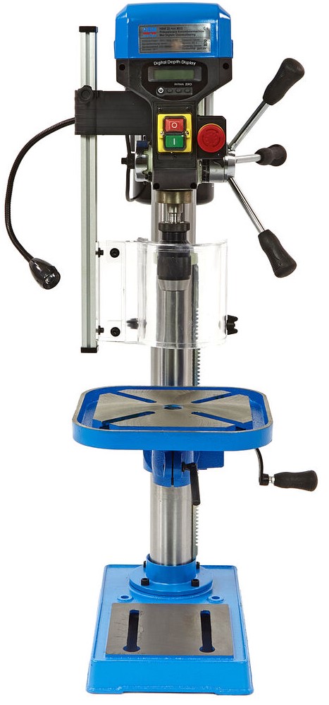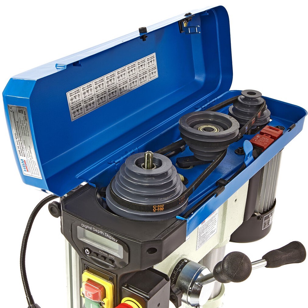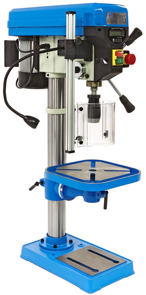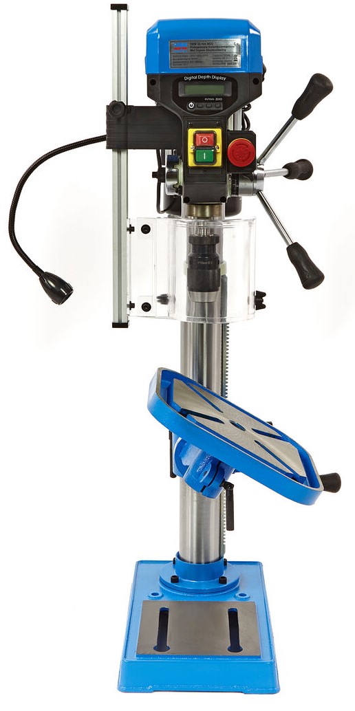 Diese digitalisierte Säulenbohrmaschine mit 750W und 82mm Spindelhub können Sie einfach auf dem Boden Ihrer Werkstatt aufstellen.